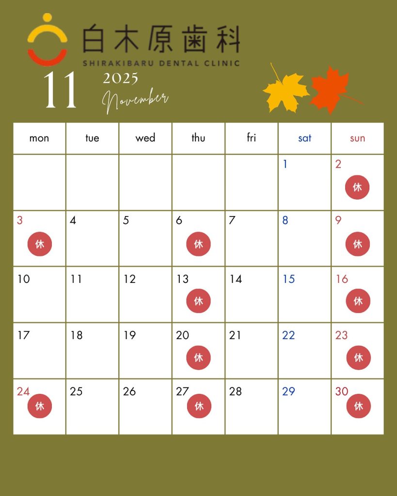 11月のカレンダーです 2025.11.1 お知らせ こんにちは!白木原歯科です✨ 11月の診療カレンダーをお知らせします🍂 季節の変わり目で体調を崩しやすい時期ですが、お口のケアも忘れずに😊 ご予約・ご来院お待ちしております! #白木原歯科 #11月のお知らせ #歯の健康 Tweet Share +1 Hatena Pocket RSS feedly Pin it 投稿者: shirakibaru お知らせ インプラント学会に参加しました前の記事