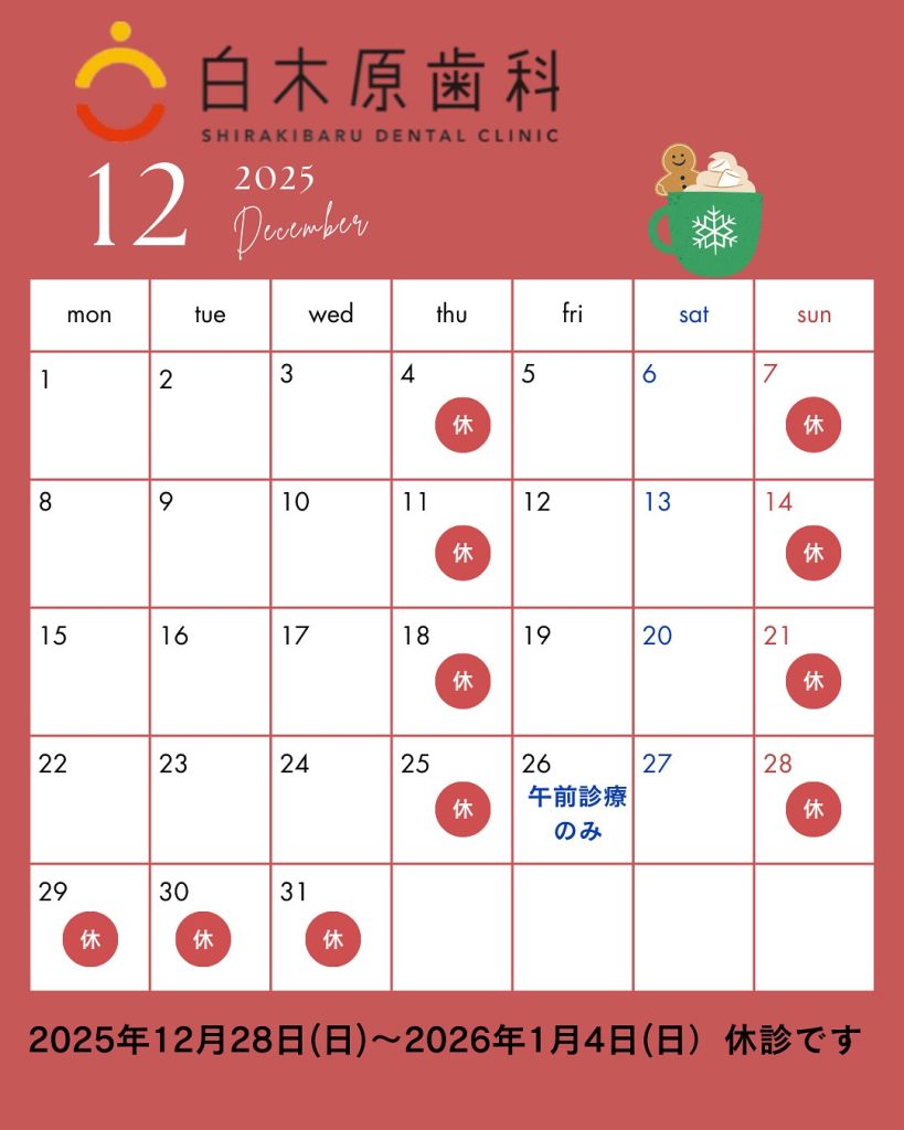12月の診療カレンダーのお知らせです✨